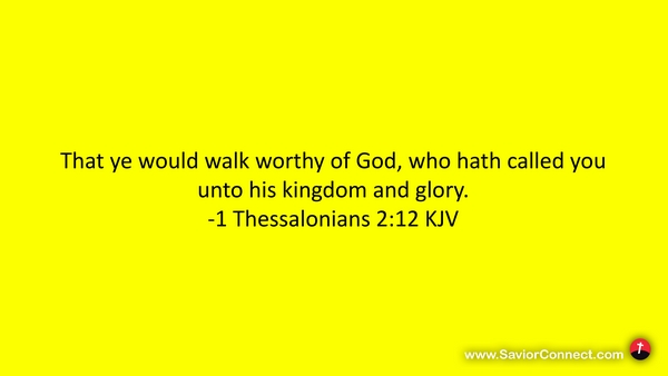 That ye would walk worthy of God, who hath called you unto his kingdom and glory. -1 Thessalonians 2:12 KJV
