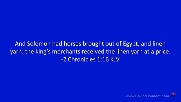 And Solomon had horses brought out of Egypt, and linen yarn: the king's merchants received the linen yarn at a price. -2 Chronicles 1:16 KJV