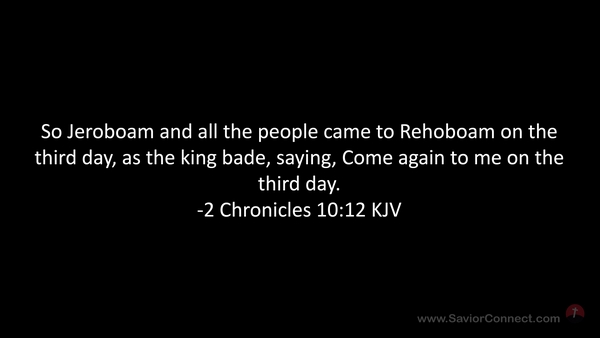 So Jeroboam and all the people came to Rehoboam on the third day, as the king bade, saying, Come again to me on the third day. -2 Chronicles 10:12 KJV