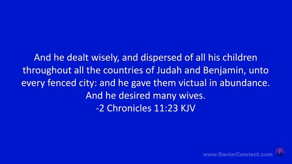 And he dealt wisely, and dispersed of all his children throughout all the countries of Judah and Benjamin, unto every fenced city: and he gave them victual in abundance. And he desired many wives. -2 Chronicles 11:23 KJV
