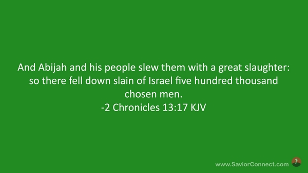 And Abijah and his people slew them with a great slaughter: so there fell down slain of Israel five hundred thousand chosen men. -2 Chronicles 13:17 KJV