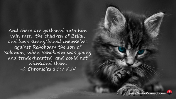 And there are gathered unto him vain men, the children of Belial, and have strengthened themselves against Rehoboam the son of Solomon, when Rehoboam was young and tenderhearted, and could not withstand them. -2 Chronicles 13:7 KJV