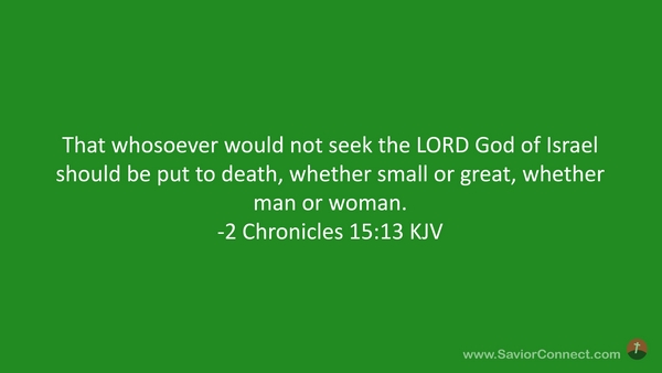 That whosoever would not seek the LORD God of Israel should be put to death, whether small or great, whether man or woman. -2 Chronicles 15:13 KJV