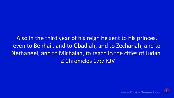 Also in the third year of his reign he sent to his princes, even to Benhail, and to Obadiah, and to Zechariah, and to Nethaneel, and to Michaiah, to teach in the cities of Judah. -2 Chronicles 17:7 KJV