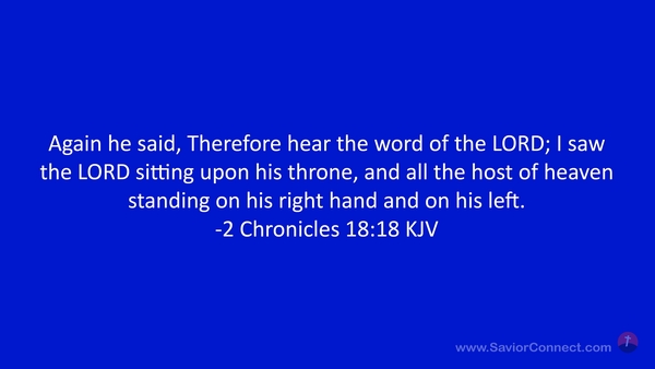Again he said, Therefore hear the word of the LORD; I saw the LORD sitting upon his throne, and all the host of heaven standing on his right hand and on his left. -2 Chronicles 18:18 KJV