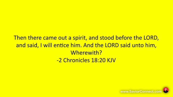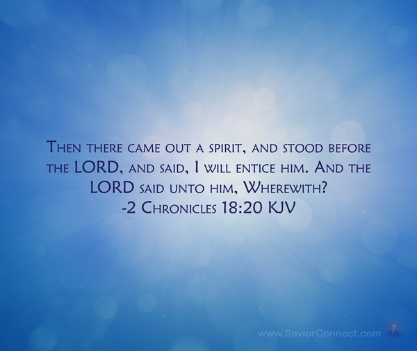 Then there came out a spirit, and stood before the LORD, and said, I will entice him. And the LORD said unto him, Wherewith? -2 Chronicles 18:20 KJV