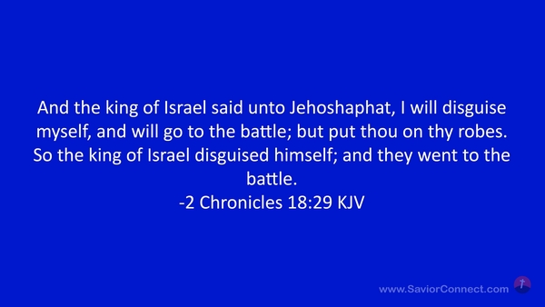 And the king of Israel said unto Jehoshaphat, I will disguise myself, and will go to the battle; but put thou on thy robes. So the king of Israel disguised himself; and they went to the battle. -2 Chronicles 18:29 KJV