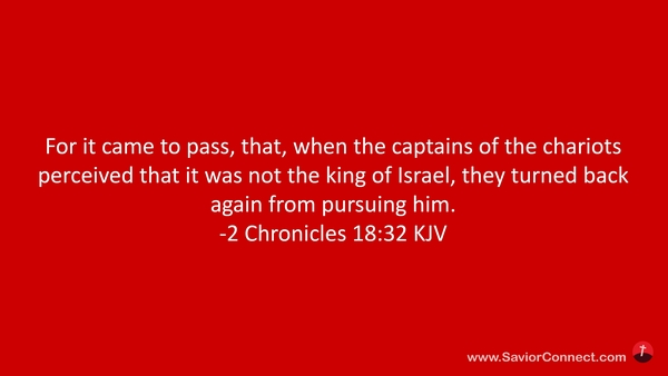 For it came to pass, that, when the captains of the chariots perceived that it was not the king of Israel, they turned back again from pursuing him. -2 Chronicles 18:32 KJV