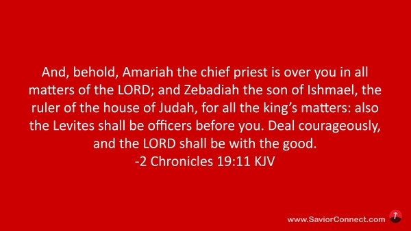 And, behold, Amariah the chief priest is over you in all matters of the LORD; and Zebadiah the son of Ishmael, the ruler of the house of Judah, for all the king's matters: also the Levites shall be officers before you. Deal courageously, and the LORD shall be with the good. -2 Chronicles 19:11 KJV