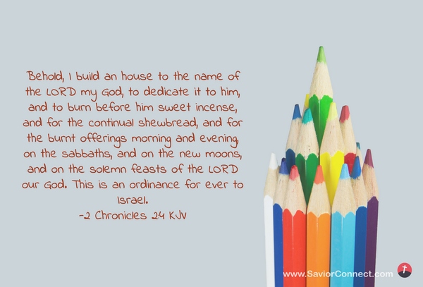 Behold, I build an house to the name of the LORD my God, to dedicate it to him, and to burn before him sweet incense, and for the continual shewbread, and for the burnt offerings morning and evening, on the sabbaths, and on the new moons, and on the solemn feasts of the LORD our God. This is an ordinance for ever to Israel. -2 Chronicles 2:4 KJV