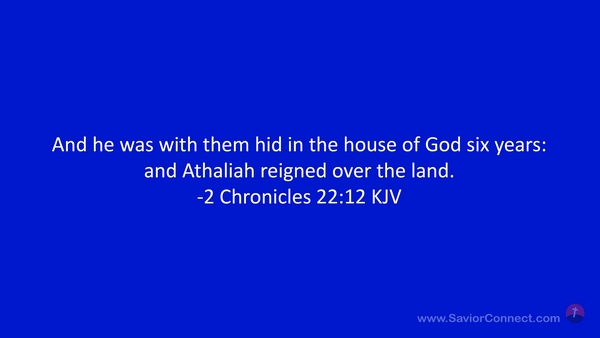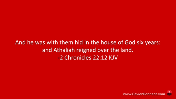 And he was with them hid in the house of God six years: and Athaliah reigned over the land. -2 Chronicles 22:12 KJV