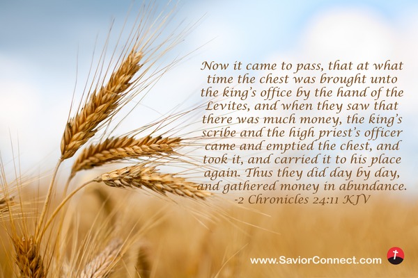 Now it came to pass, that at what time the chest was brought unto the king's office by the hand of the Levites, and when they saw that there was much money, the king's scribe and the high priest's officer came and emptied the chest, and took it, and carried it to his place again. Thus they did day by day, and gathered money in abundance. -2 Chronicles 24:11 KJV