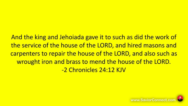 And the king and Jehoiada gave it to such as did the work of the service of the house of the LORD, and hired masons and carpenters to repair the house of the LORD, and also such as wrought iron and brass to mend the house of the LORD. -2 Chronicles 24:12 KJV