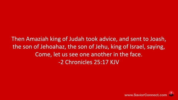 Then Amaziah king of Judah took advice, and sent to Joash, the son of Jehoahaz, the son of Jehu, king of Israel, saying, Come, let us see one another in the face. -2 Chronicles 25:17 KJV