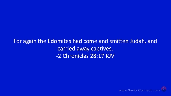 For again the Edomites had come and smitten Judah, and carried away captives. -2 Chronicles 28:17 KJV