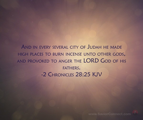 And in every several city of Judah he made high places to burn incense unto other gods, and provoked to anger the LORD God of his fathers. -2 Chronicles 28:25 KJV