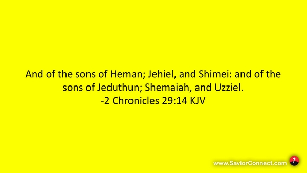 And of the sons of Heman; Jehiel, and Shimei: and of the sons of Jeduthun; Shemaiah, and Uzziel. -2 Chronicles 29:14 KJV