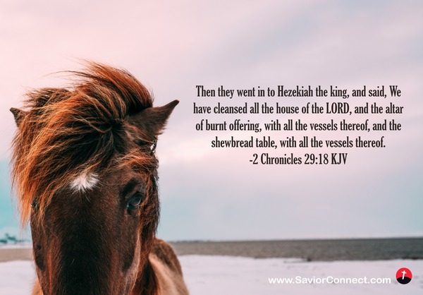 Then they went in to Hezekiah the king, and said, We have cleansed all the house of the LORD, and the altar of burnt offering, with all the vessels thereof, and the shewbread table, with all the vessels thereof. -2 Chronicles 29:18 KJV