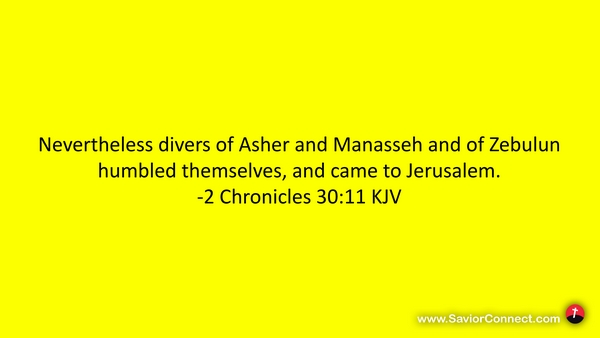 Nevertheless divers of Asher and Manasseh and of Zebulun humbled themselves, and came to Jerusalem. -2 Chronicles 30:11 KJV