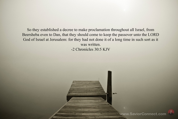 So they established a decree to make proclamation throughout all Israel, from Beersheba even to Dan, that they should come to keep the passover unto the LORD God of Israel at Jerusalem: for they had not done it of a long time in such sort as it was written. -2 Chronicles 30:5 KJV
