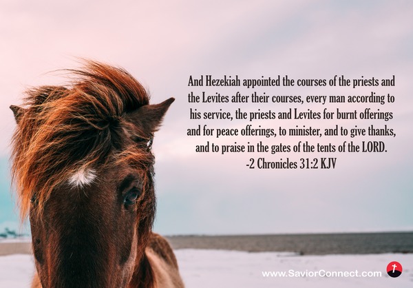 And Hezekiah appointed the courses of the priests and the Levites after their courses, every man according to his service, the priests and Levites for burnt offerings and for peace offerings, to minister, and to give thanks, and to praise in the gates of the tents of the LORD. -2 Chronicles 31:2 KJV