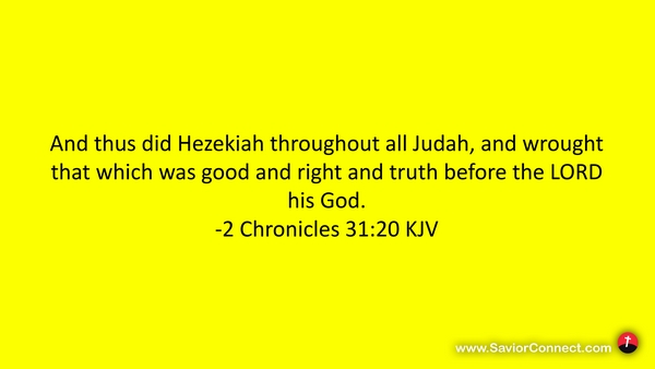 And thus did Hezekiah throughout all Judah, and wrought that which was good and right and truth before the LORD his God. -2 Chronicles 31:20 KJV