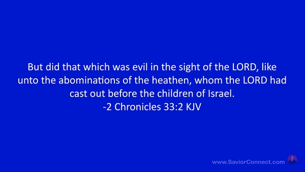 But did that which was evil in the sight of the LORD, like unto the abominations of the heathen, whom the LORD had cast out before the children of Israel. -2 Chronicles 33:2 KJV