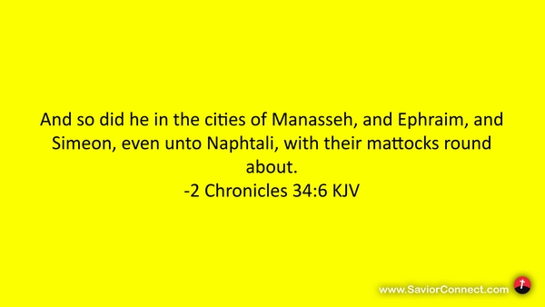 And so did he in the cities of Manasseh, and Ephraim, and Simeon, even unto Naphtali, with their mattocks round about. -2 Chronicles 34:6 KJV