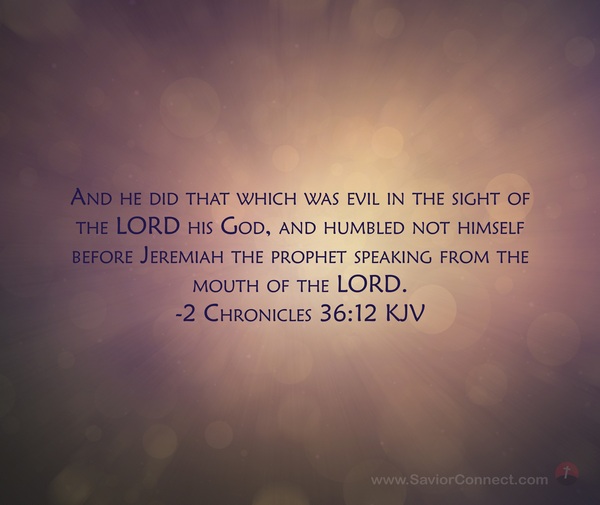 And he did that which was evil in the sight of the LORD his God, and humbled not himself before Jeremiah the prophet speaking from the mouth of the LORD. -2 Chronicles 36:12 KJV