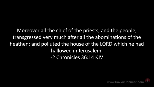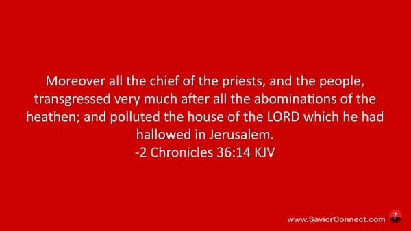 Moreover all the chief of the priests, and the people, transgressed very much after all the abominations of the heathen; and polluted the house of the LORD which he had hallowed in Jerusalem. -2 Chronicles 36:14 KJV