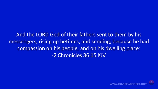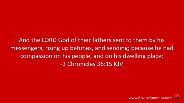 And the LORD God of their fathers sent to them by his messengers, rising up betimes, and sending; because he had compassion on his people, and on his dwelling place: -2 Chronicles 36:15 KJV