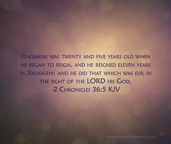Jehoiakim was twenty and five years old when he began to reign, and he reigned eleven years in Jerusalem: and he did that which was evil in the sight of the LORD his God. -2 Chronicles 36:5 KJV