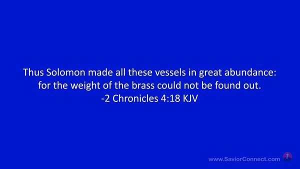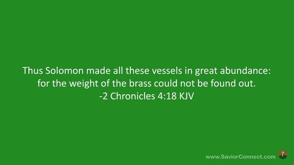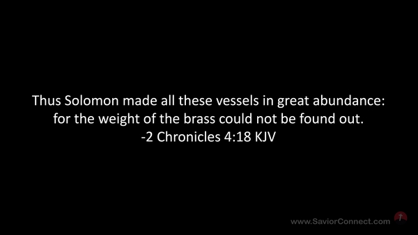 Thus Solomon made all these vessels in great abundance: for the weight of the brass could not be found out. -2 Chronicles 4:18 KJV