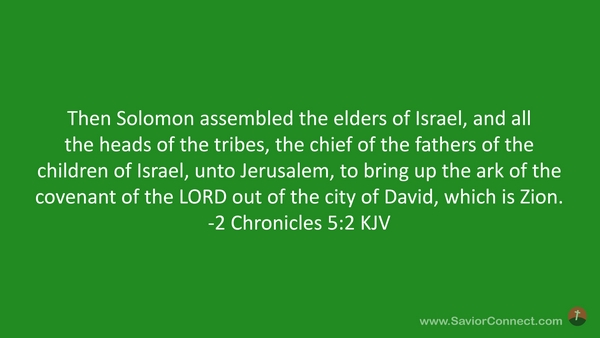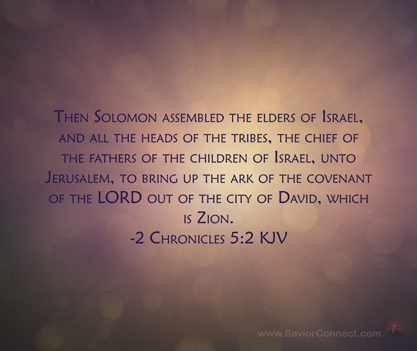 Then Solomon assembled the elders of Israel, and all the heads of the tribes, the chief of the fathers of the children of Israel, unto Jerusalem, to bring up the ark of the covenant of the LORD out of the city of David, which is Zion. -2 Chronicles 5:2 KJV
