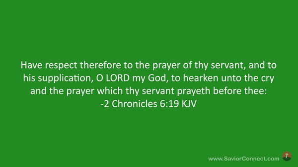 Have respect therefore to the prayer of thy servant, and to his supplication, O LORD my God, to hearken unto the cry and the prayer which thy servant prayeth before thee: -2 Chronicles 6:19 KJV