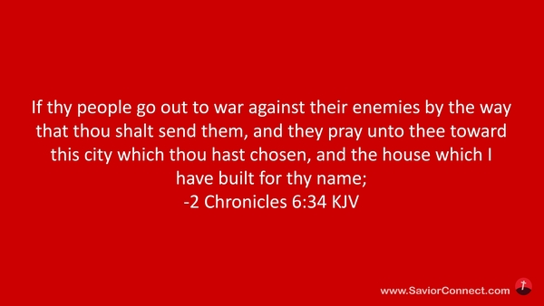 If thy people go out to war against their enemies by the way that thou shalt send them, and they pray unto thee toward this city which thou hast chosen, and the house which I have built for thy name; -2 Chronicles 6:34 KJV