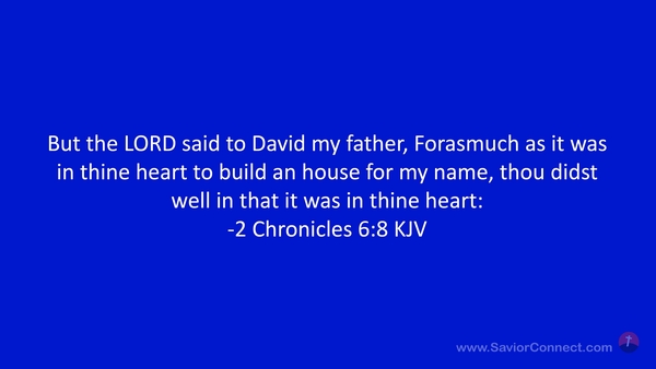 But the LORD said to David my father, Forasmuch as it was in thine heart to build an house for my name, thou didst well in that it was in thine heart: -2 Chronicles 6:8 KJV