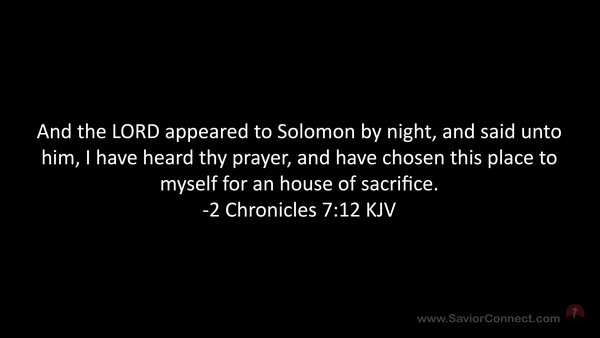 And the LORD appeared to Solomon by night, and said unto him, I have heard thy prayer, and have chosen this place to myself for an house of sacrifice. -2 Chronicles 7:12 KJV