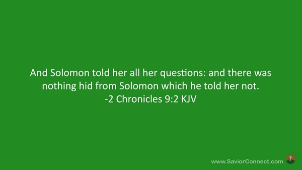 And Solomon told her all her questions: and there was nothing hid from Solomon which he told her not. -2 Chronicles 9:2 KJV