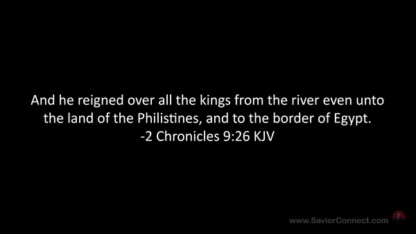 And he reigned over all the kings from the river even unto the land of the Philistines, and to the border of Egypt. -2 Chronicles 9:26 KJV