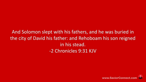 And Solomon slept with his fathers, and he was buried in the city of David his father: and Rehoboam his son reigned in his stead. -2 Chronicles 9:31 KJV