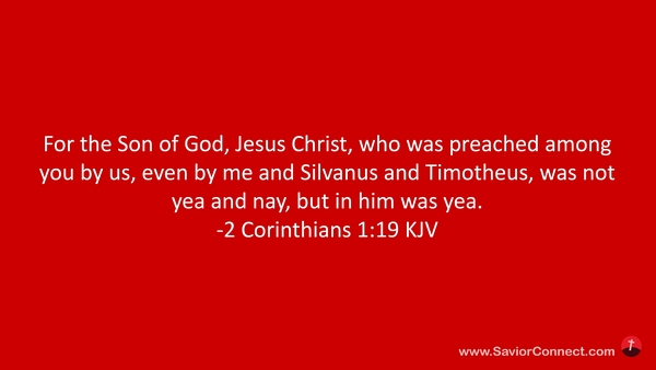 For the Son of God, Jesus Christ, who was preached among you by us, even by me and Silvanus and Timotheus, was not yea and nay, but in him was yea. -2 Corinthians 1:19 KJV