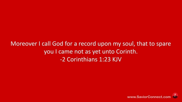 Moreover I call God for a record upon my soul, that to spare you I came not as yet unto Corinth. -2 Corinthians 1:23 KJV