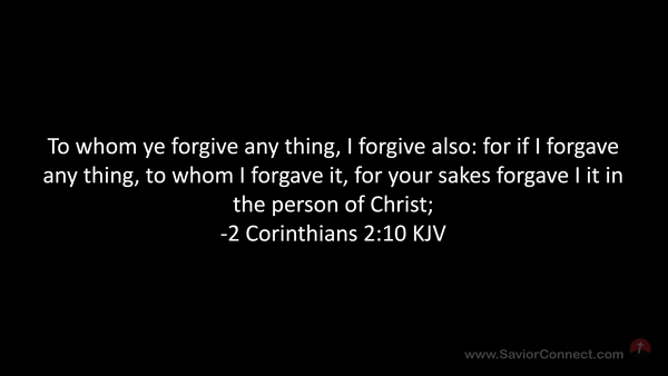 To whom ye forgive any thing, I forgive also: for if I forgave any thing, to whom I forgave it, for your sakes forgave I it in the person of Christ; -2 Corinthians 2:10 KJV
