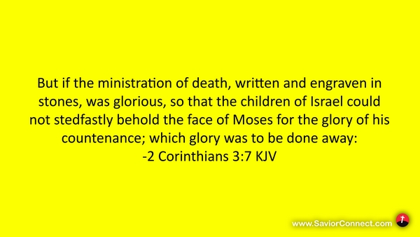 But if the ministration of death, written and engraven in stones, was glorious, so that the children of Israel could not stedfastly behold the face of Moses for the glory of his countenance; which glory was to be done away: -2 Corinthians 3:7 KJV