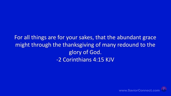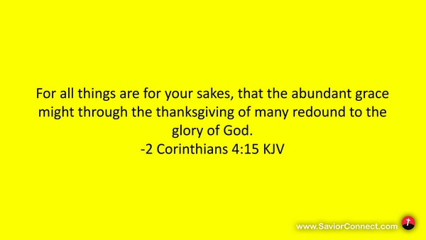 For all things are for your sakes, that the abundant grace might through the thanksgiving of many redound to the glory of God. -2 Corinthians 4:15 KJV
