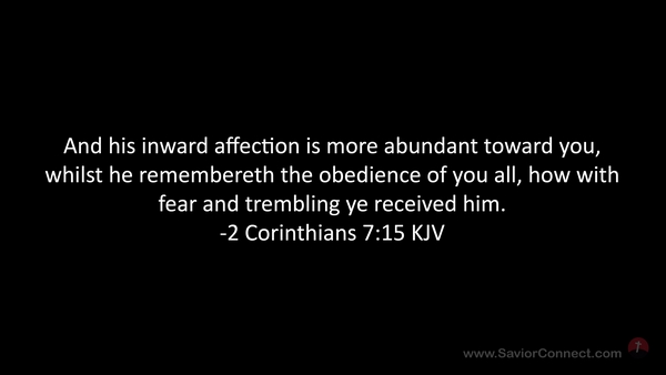And his inward affection is more abundant toward you, whilst he remembereth the obedience of you all, how with fear and trembling ye received him. -2 Corinthians 7:15 KJV