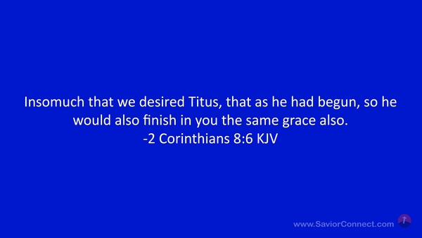 Insomuch that we desired Titus, that as he had begun, so he would also finish in you the same grace also. -2 Corinthians 8:6 KJV