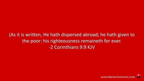 (As it is written, He hath dispersed abroad; he hath given to the poor: his righteousness remaineth for ever. -2 Corinthians 9:9 KJV
