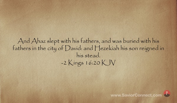 And Ahaz slept with his fathers, and was buried with his fathers in the city of David: and Hezekiah his son reigned in his stead. -2 Kings 16:20 KJV